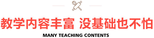 基本功阶段、花卉蛋糕、生肖蛋糕、巧克力制作酥点蛋糕、艺术蛋糕、陶艺蛋糕、韩式裱花、翻糖蛋糕、咖啡饮品、法式甜点、软面包、欧法式面包、面塑/糖艺、市场流行品等课程。